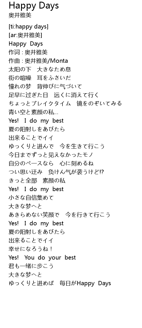 | [03:59.655] | ゆっくりと进めば 每日がHappy Days |