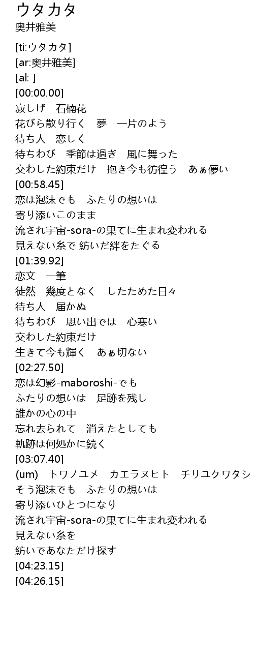 | [ti:ウタカタ] | |
