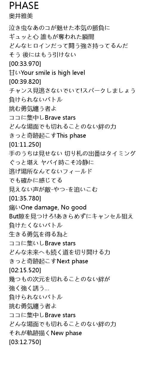 | [02:07.560] | きっと奇跡起こすNext phase |