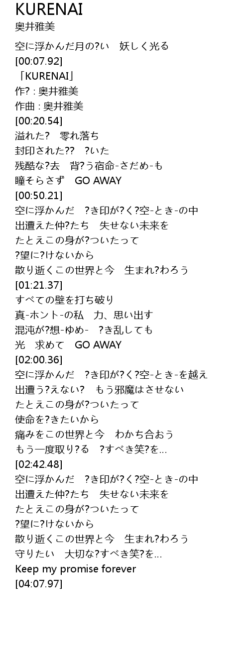 | [00:58.52] | 出遭えた仲?たち 失せない未来を |