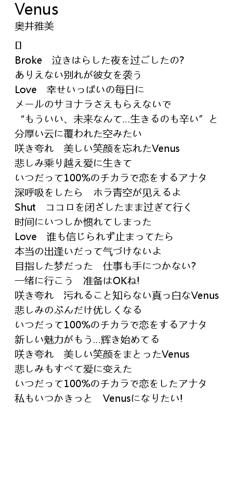 | 私もいつかきっと Venusになりたい! |