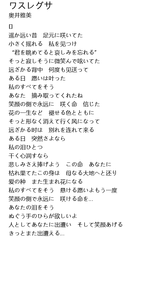 | Song | ワスレグサ |