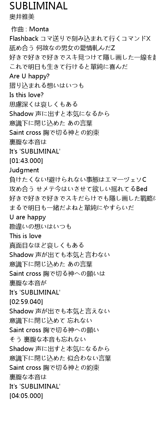| [02:43.410] | It' s ' SUBLIMINAL' |