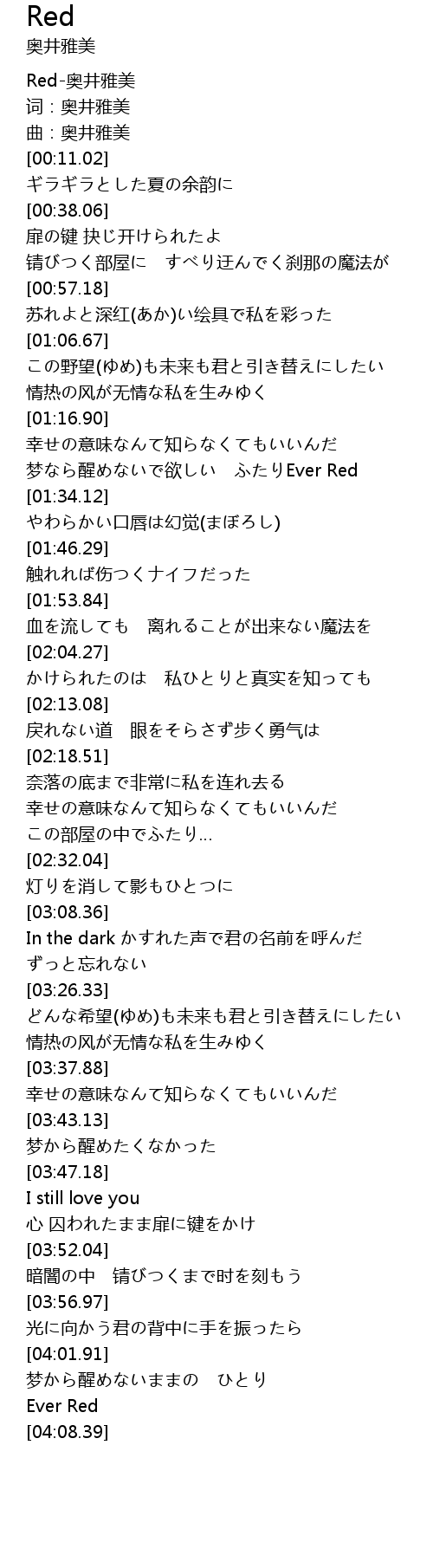 | [01:22.83] | mèng xǐng yù Ever Red |