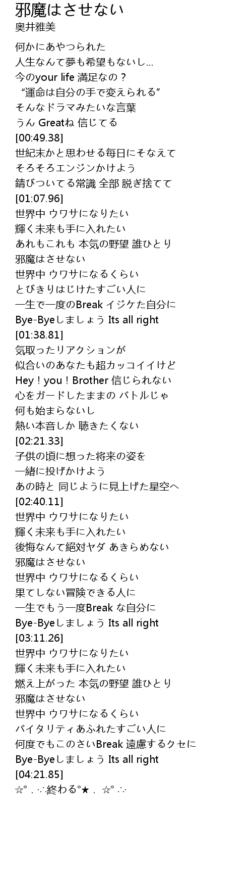 | [04:17.43] | Bye-Byeしましょう Its all right |