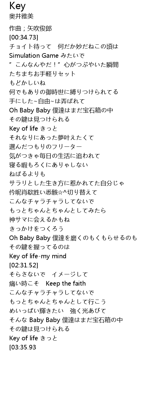 [03:17.28] そんな Baby Baby 僕達はまだ宝石箱の中