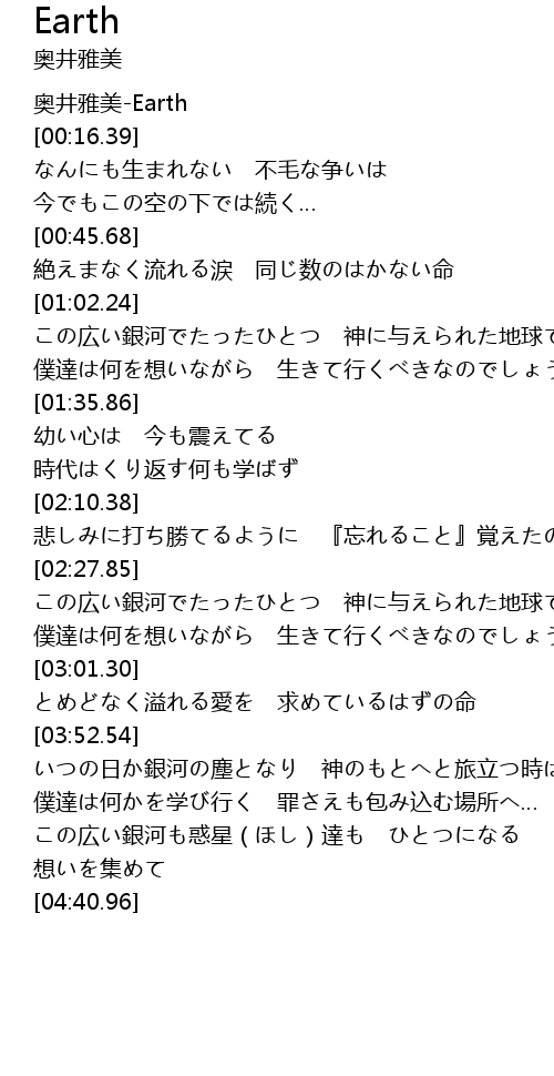 | [00:00.00] | 奥井雅美-Earth |
