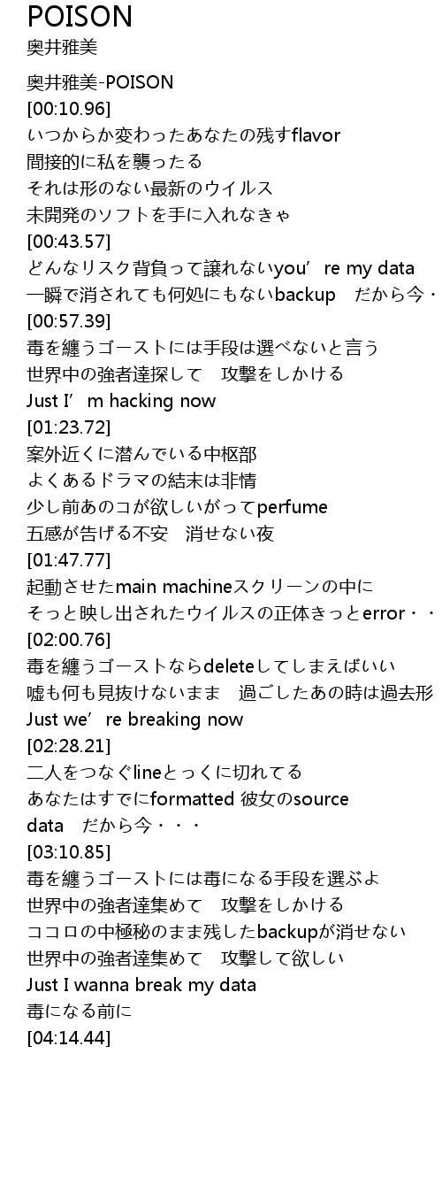 | [00:00.00] | 奥井雅美-POISON |