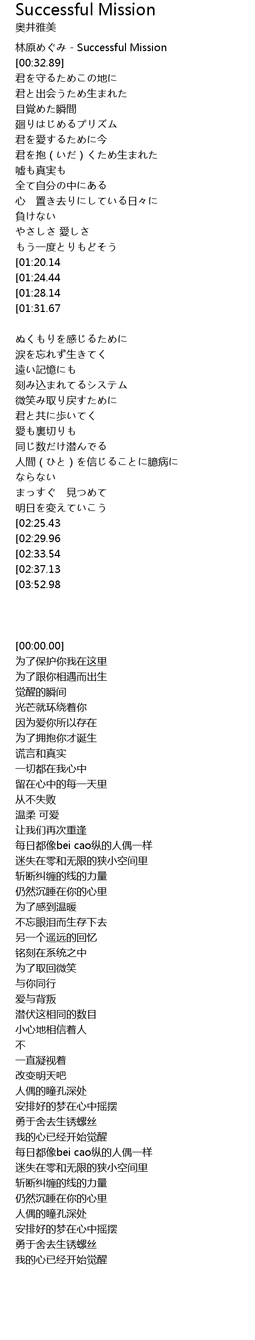 | [00:00.00] | 林原めぐみ - Successful Mission |
