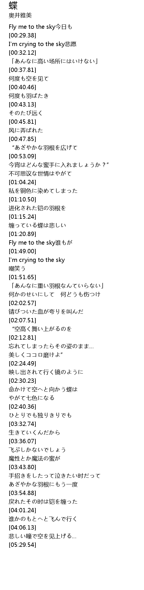 | [02:30.89] | 命かけて空へと向かう蝶は |