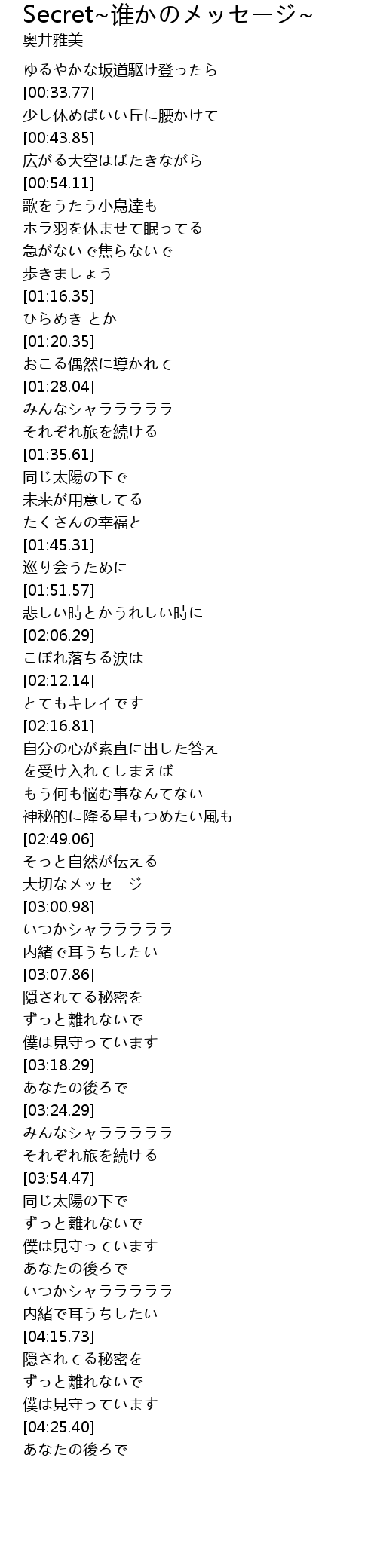 | [02:41.04] | 神秘的に降る星もつめたい風も |