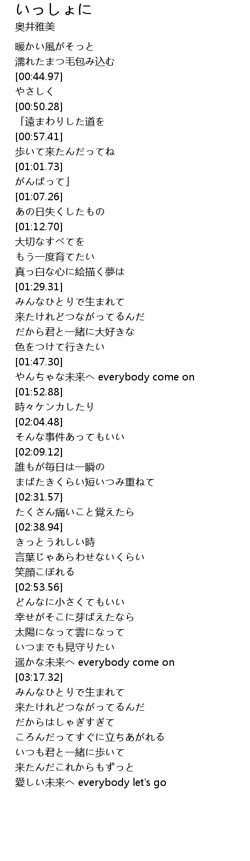 | [03:12.25] | 遥かな未来へ everybody come on |