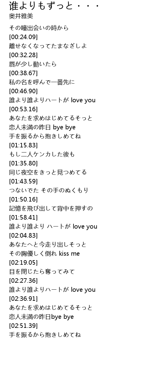 | [01:59.04] | 誰より誰より ハートが love you |