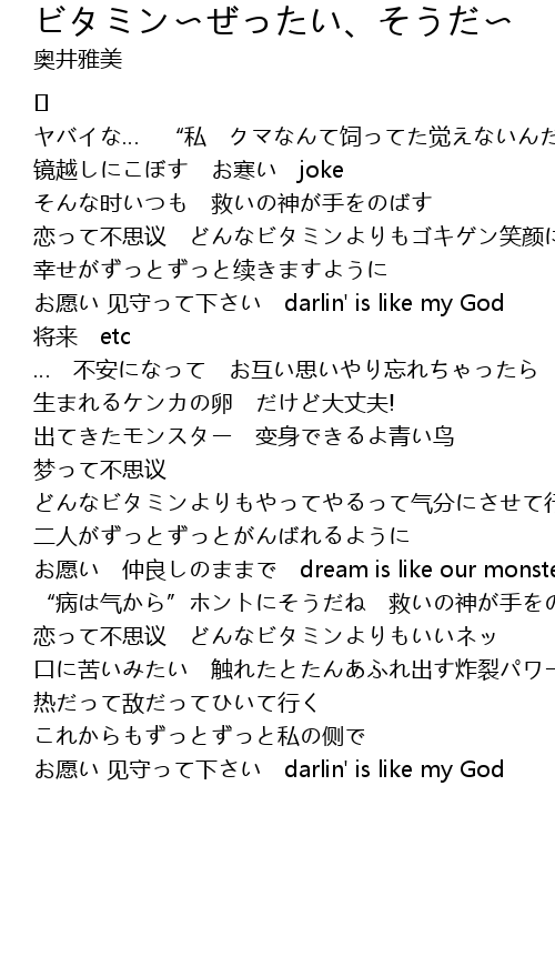 | 恋って不思议 どんなビタミンよりもいいネッ | |