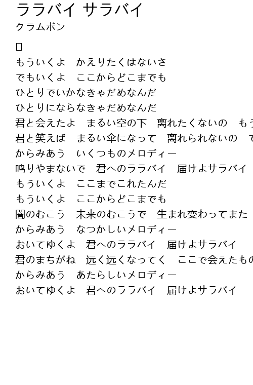 | おいてゆくよ 君へのララバイ 届けよサラバイ |