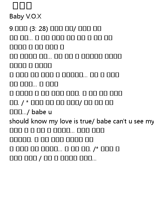 | should know my love is true/ babe can't u see my love 끝났다는 지난 사랑을 왜 또 다시 넌 의심하니... 멋대로 그렇게 상상하지마. 난 이제 너르르 떠나겠어 끝없 | |