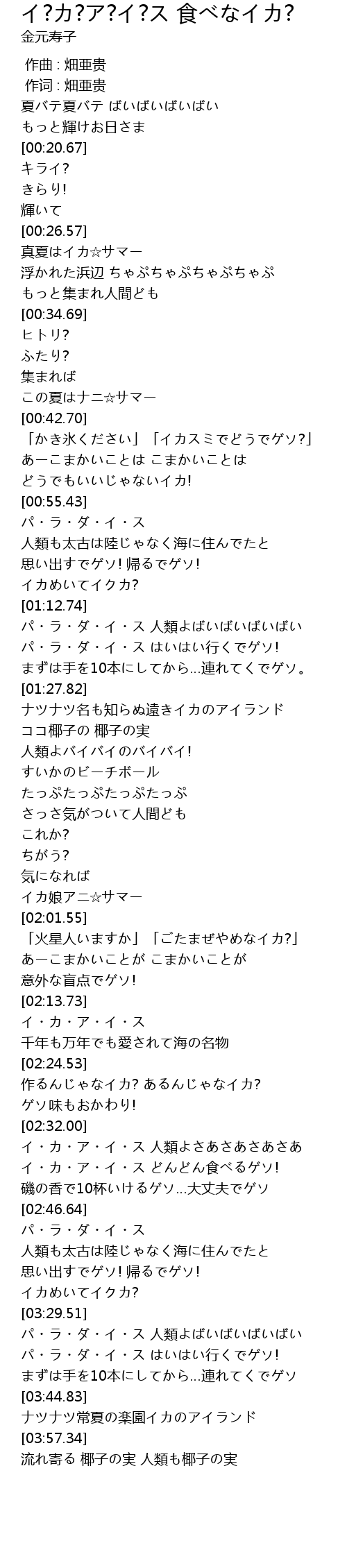 | [03:51.11] | ナツナツ常夏の楽園イカのアイランド |