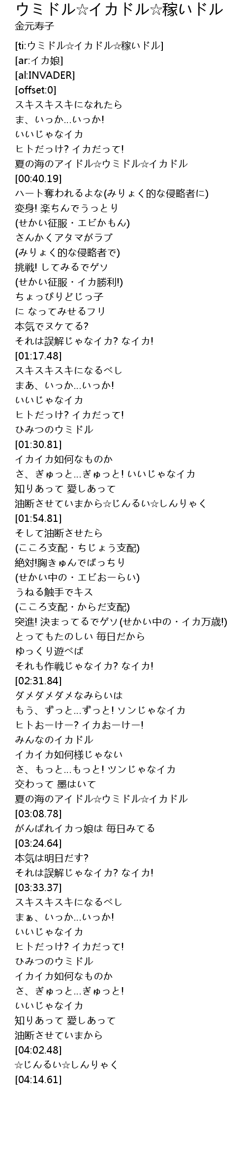| [02:53.96] | 夏の海のアイドル☆ウミドル☆イカドル |