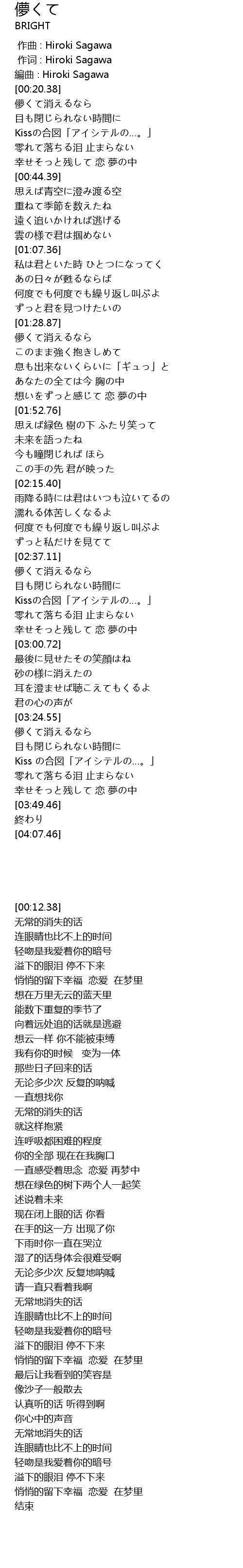 | [00:12.38] | bian qu Hiroki Sagawa |