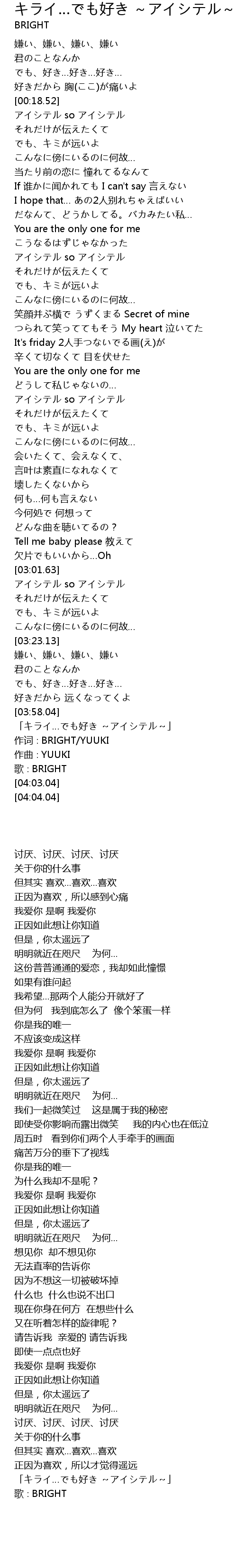 | [03:59.04] | 「キライ…でも好き ~アイシテル~」 |