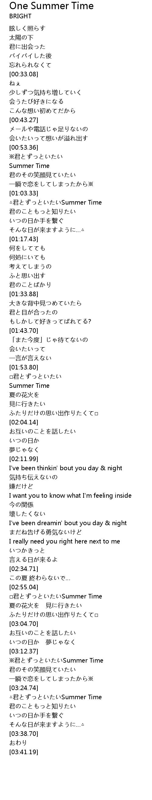 | [03:25.03] | △君とずっといたいSummer Time |