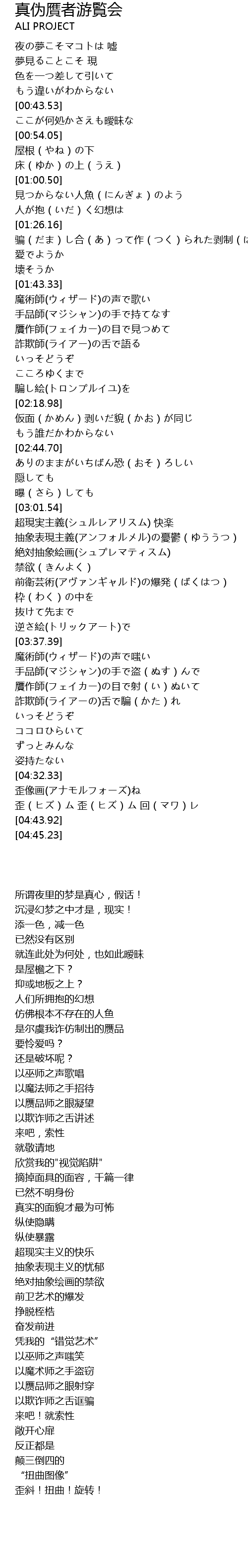 | [00:20.41] | 夜の夢こそマコトは 嘘 |