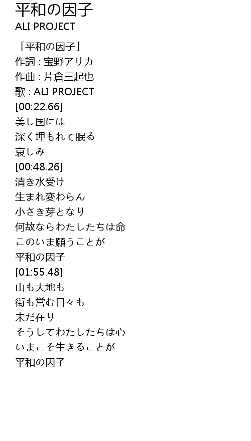 | [03:24.12] | 平和の因子 |