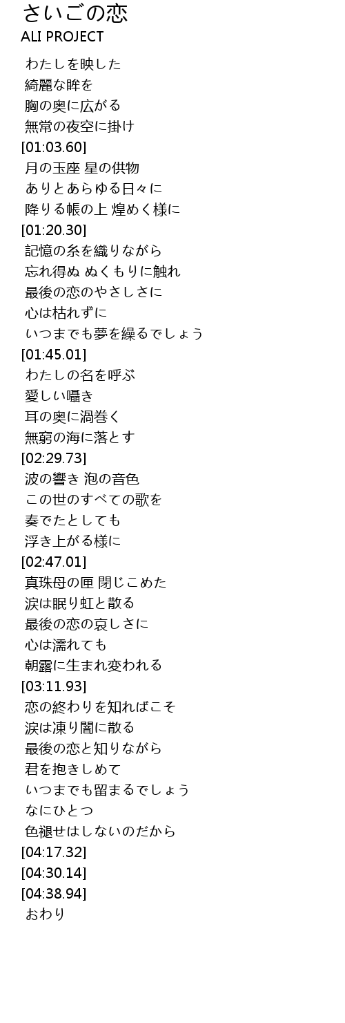 | [03:41.25] | 恋の終わりを知ればこそ |