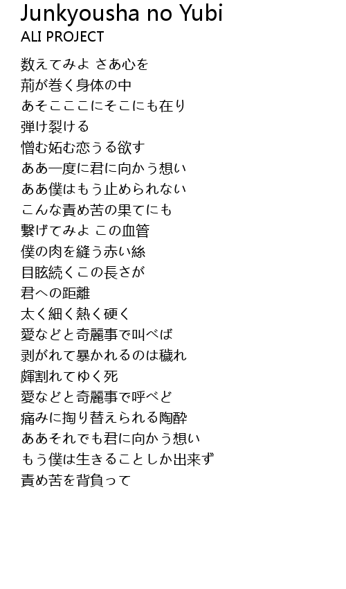 Junkyousha no Yubi Lyrics