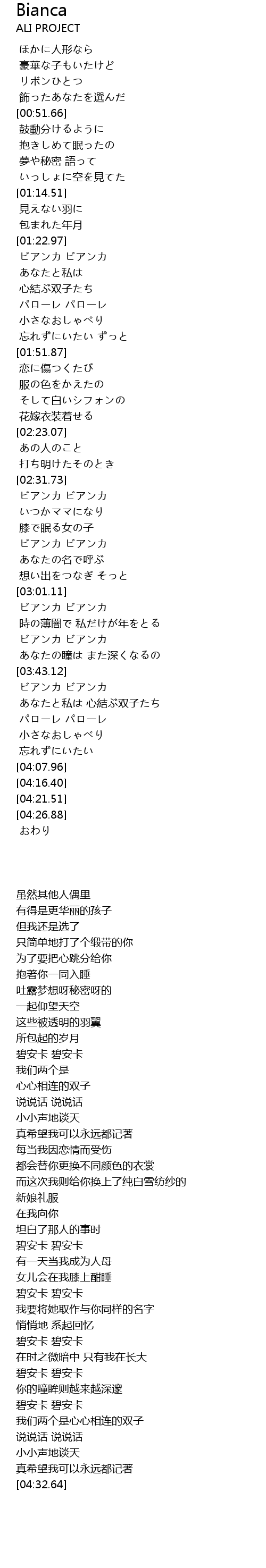| [03:20.77] | ビアンカ ビアンカ |