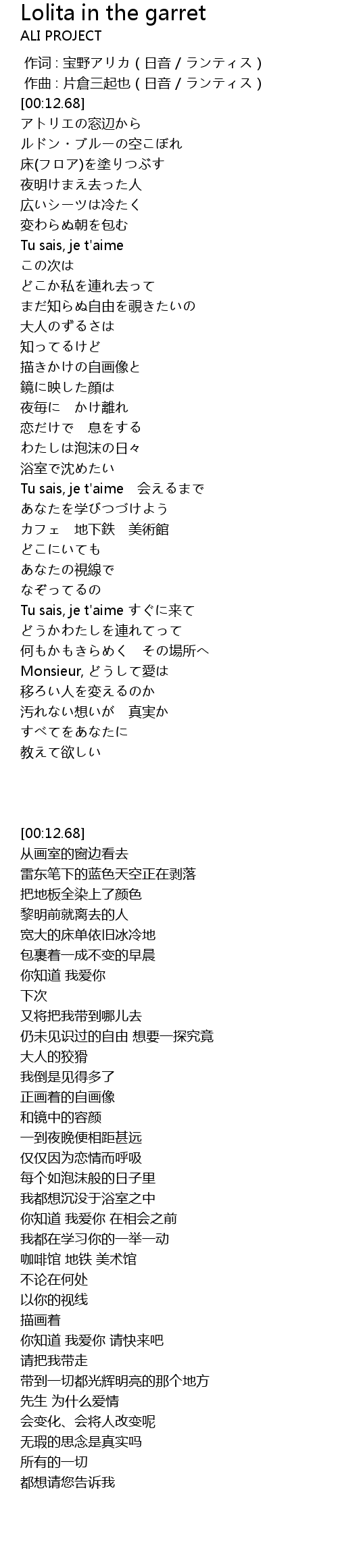 | [03:14.15] | Tu sais, je t'aime すぐに来て |