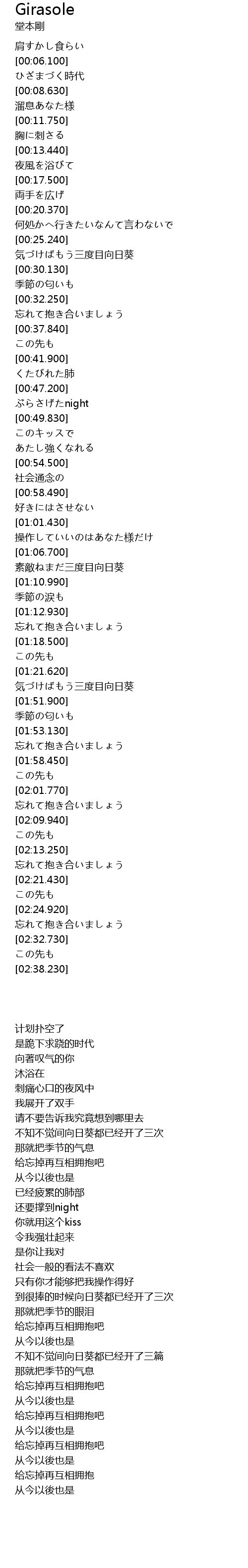 | [01:08.250] | 素敵ねまだ三度目向日葵 |