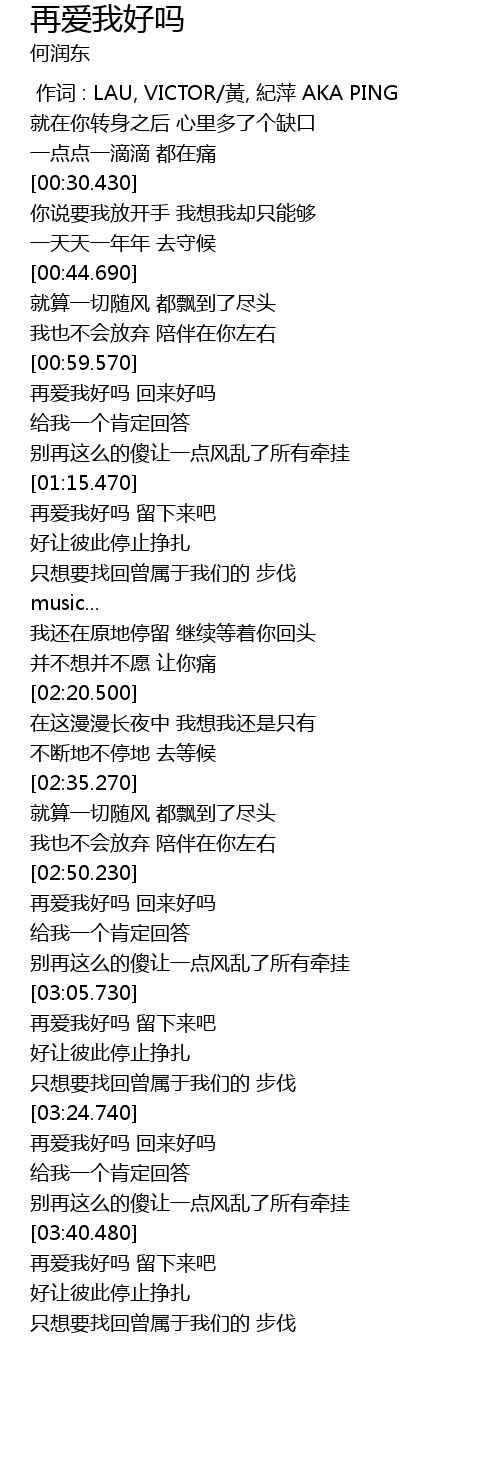 | [03:06.130] | 再爱我好吗 留下来吧 |