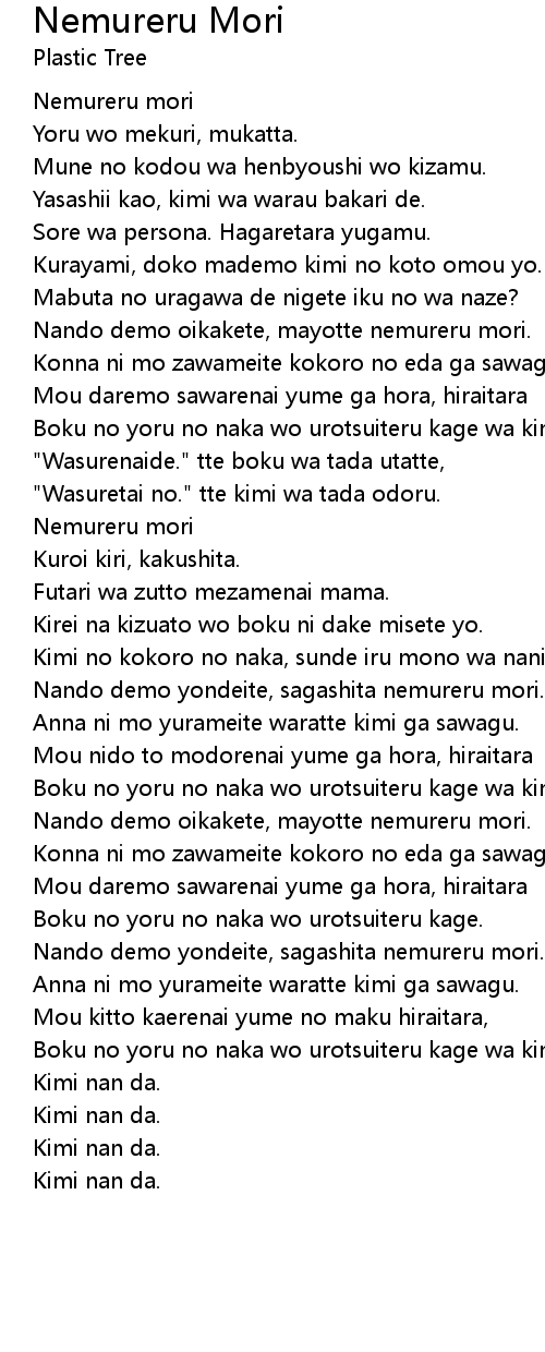 Nando demo yondeite, sagashita nemureru mori. |