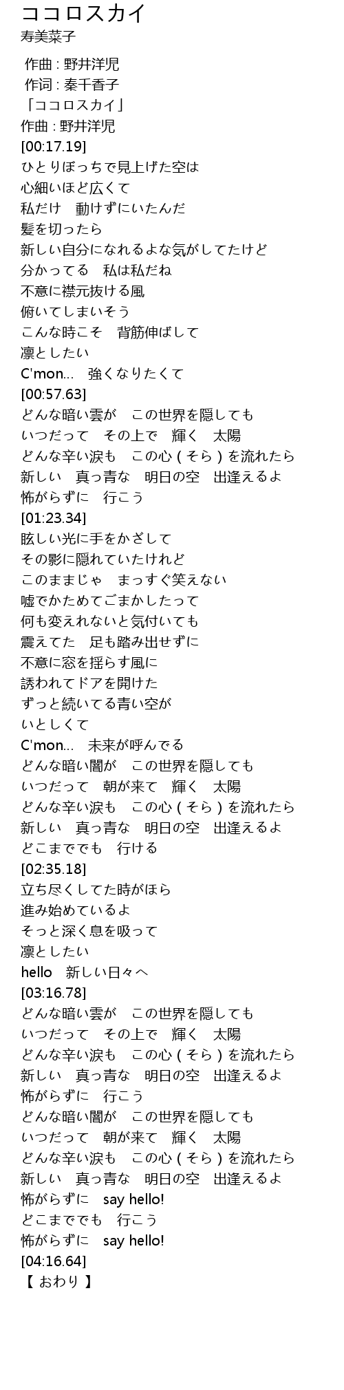 | [00:01.19] | 「ココロスカイ」 |