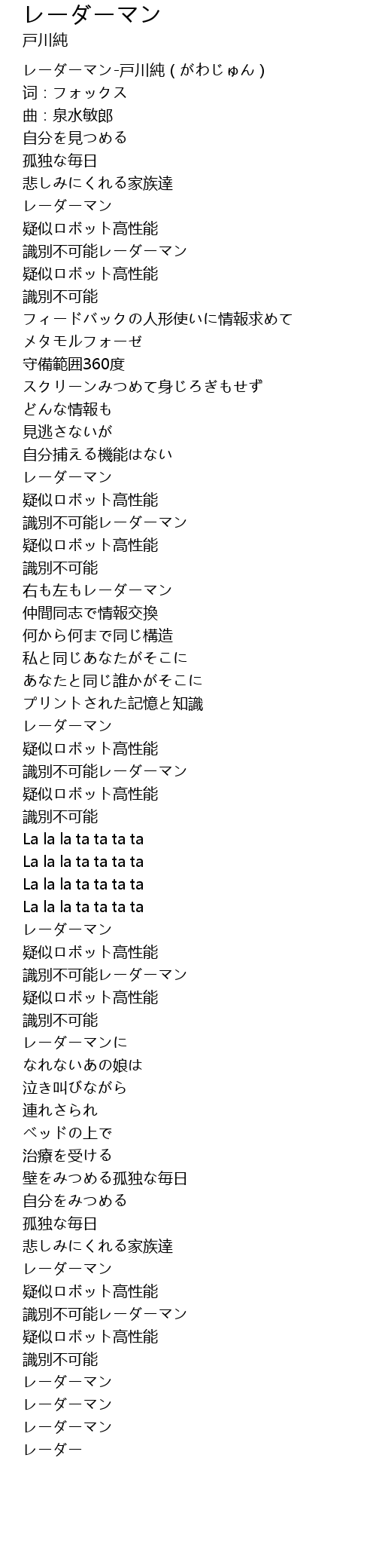 | [00:00.00] | レーダーマン-戸川純(がわじゅん) |