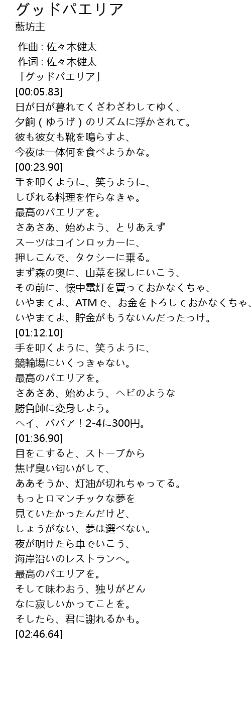 | [00:01.83] | 「グッドパエリア」 |