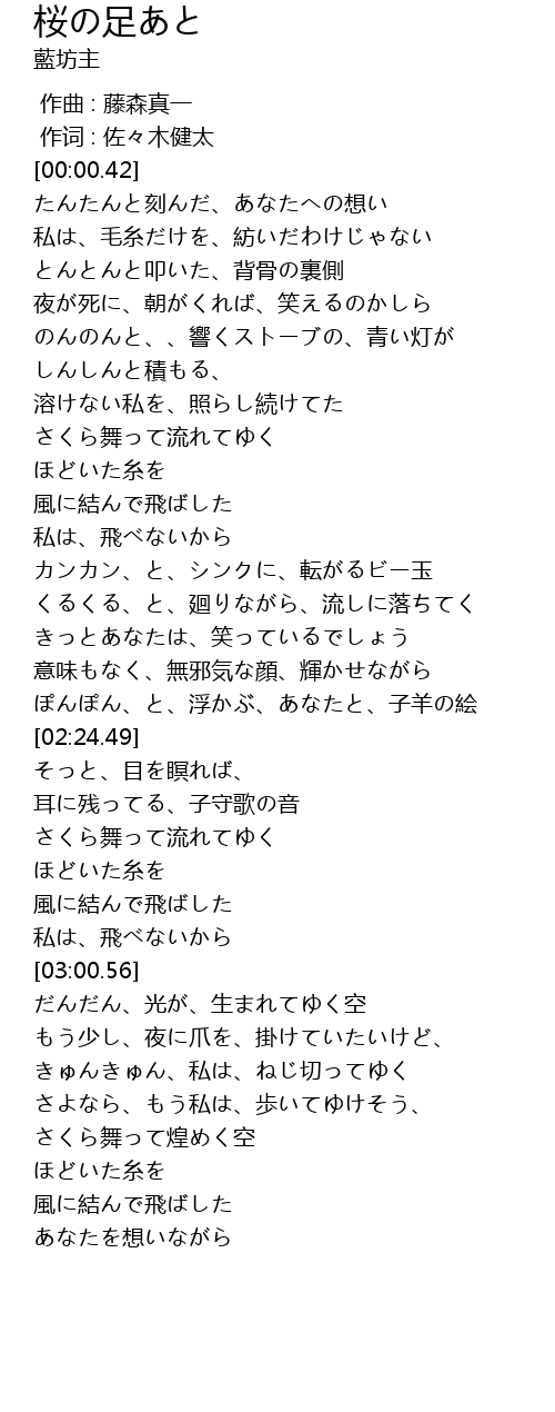 | [02:34.03] | さくら舞って流れてゆく |