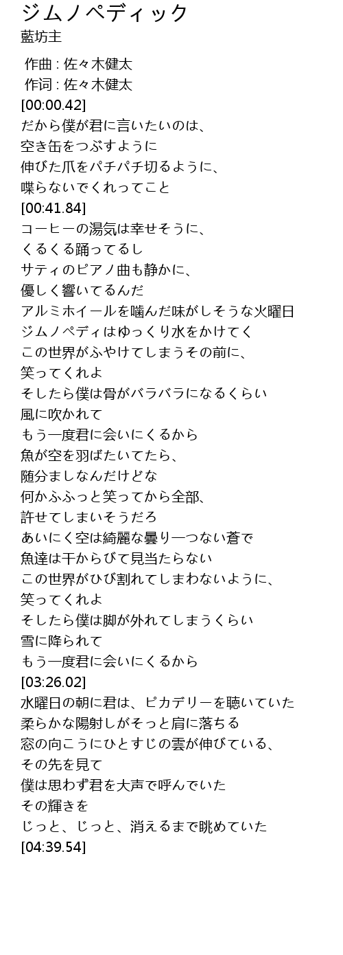 | [00:00.00] | 作曲 : 佐々木健太 |