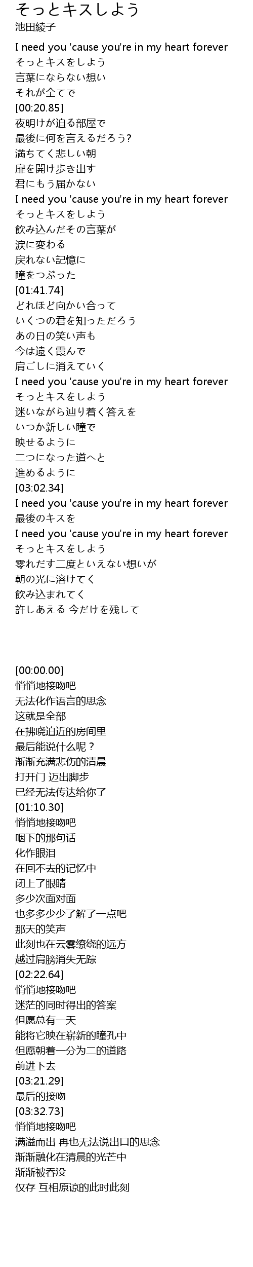 | [03:21.29] | I need you ' cause you' re in my heart forever |