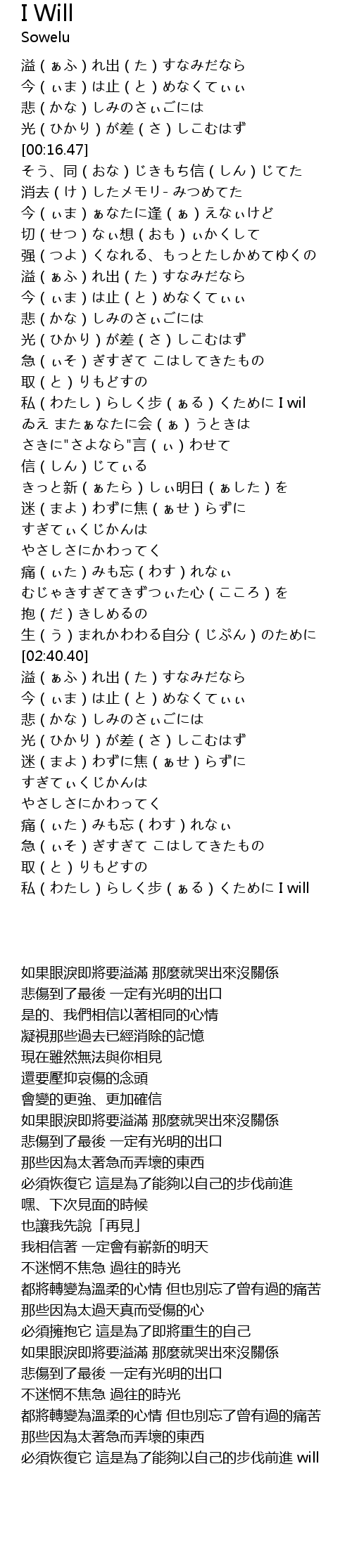| [03:37.18] | qu si bu I will |
