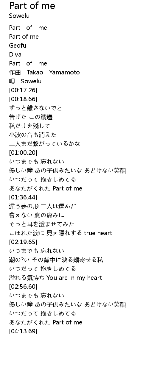 | [02:11.96] | こぼれた淚に 見え隱れする true heart |
