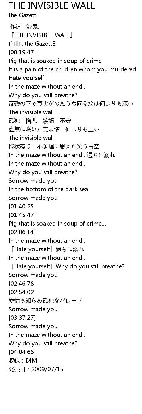 | [00:01.47] | 「THE INVISIBLE WALL」 |