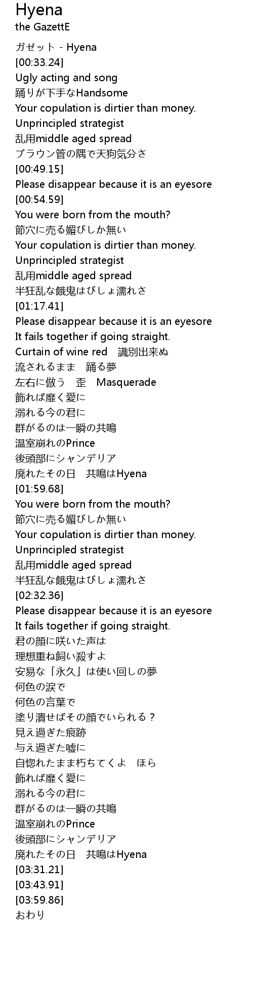 | [00:00.00] | ガゼット - Hyena |