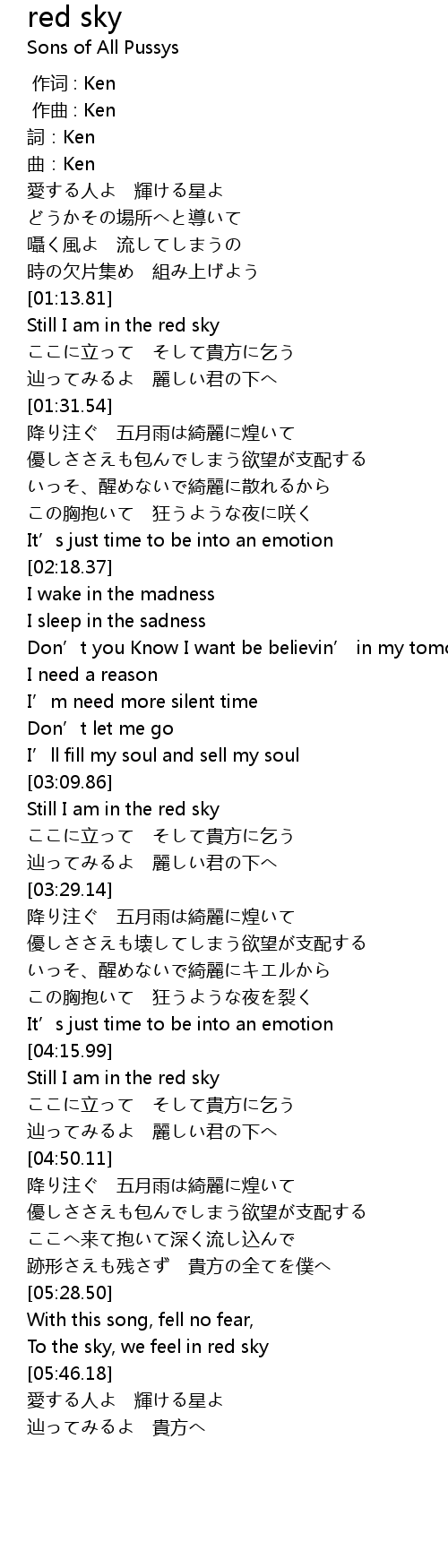 | [05:20.24] | 跡形さえも残さず 貴方の全てを僕へ |