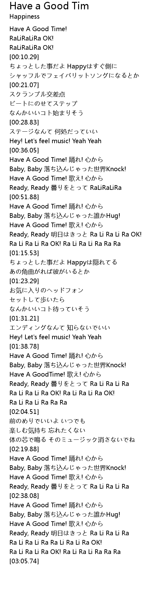 | [02:22.95] | Have A Good Time! 踊れ! 心から |