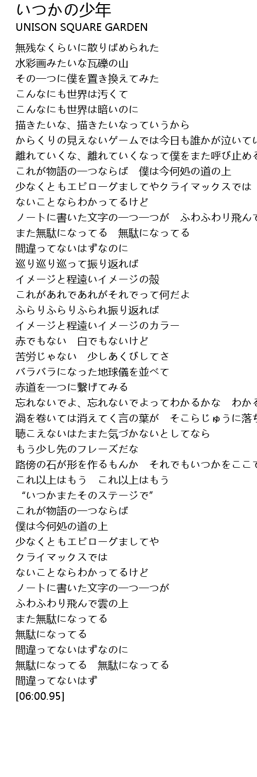 | Song | いつかの少年 |