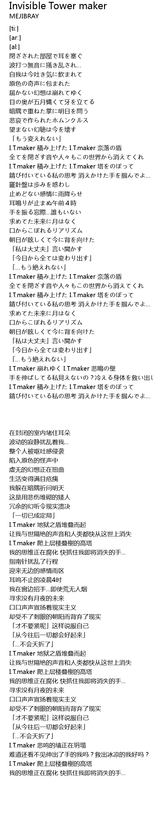 | [03:00.04] | I.T.maker 積み上げた I.T.maker 奈落の盾 |