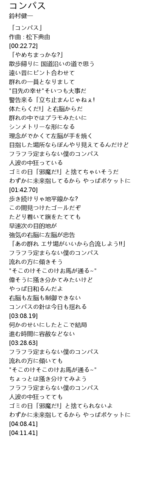 | [03:47.39] | フラフラ定まらない僕のコンパス |