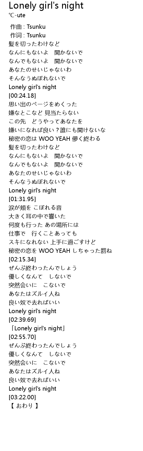 | [00:58.77] | 秘密の恋は WOO YEAH 儚く終わる |